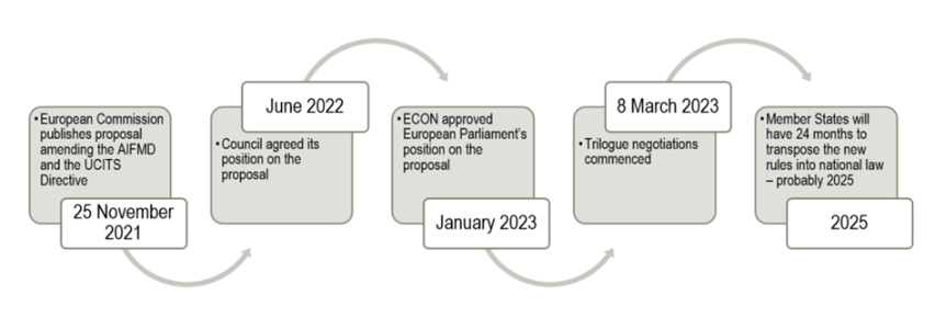 It had been hoped that the review of the Alternative Investment Fund Managers Directive (“AIFMD“) would be completed by the end of the Swedish Presidency of the Council of the EU (“Council“) in June 2023, but the negotiations on the final text between the European Commission (“Commission“), Council and European Parliament rumble on.