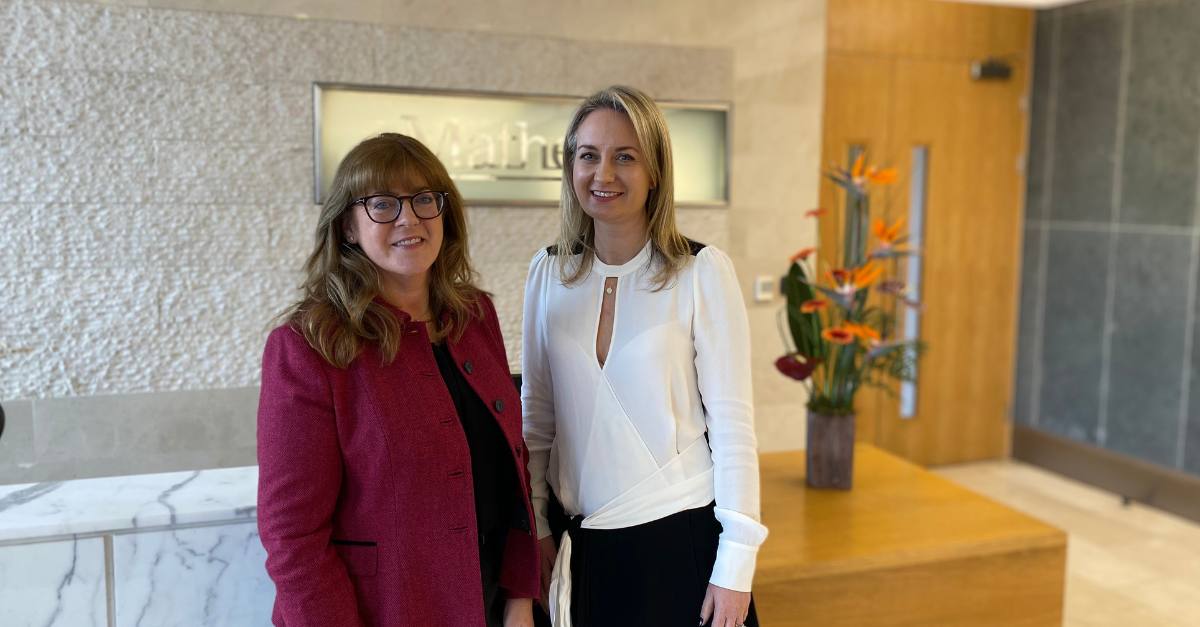 Pictured (L-R): Carin Bryans, former JP Morgan Bank Ireland CEO / Senior Country Executive, and Sally Anne Stone, partner and Head of Matheson’s Commercial Real Estate Department.