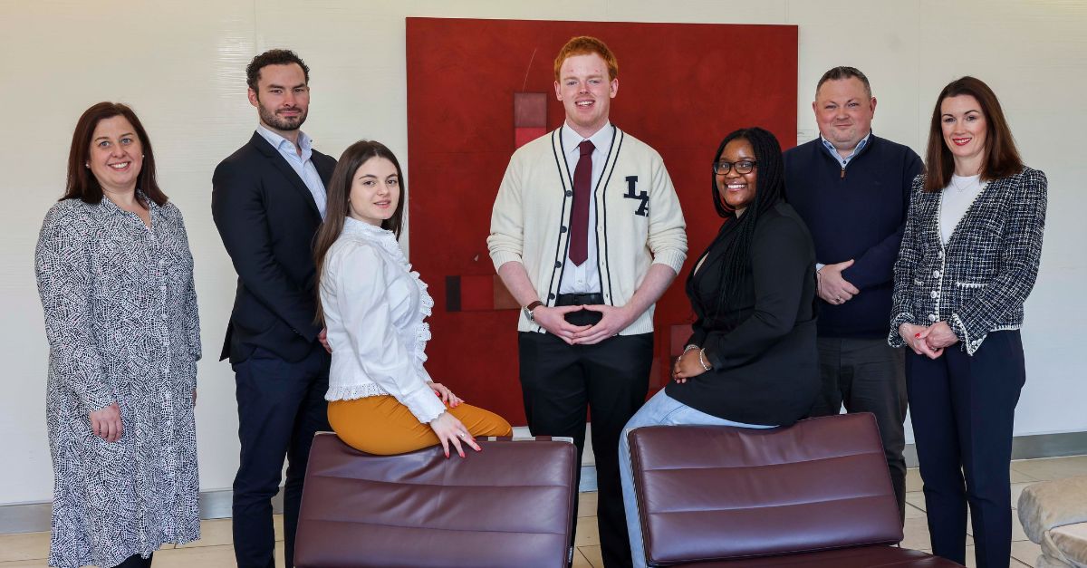 Pictured L-R: Nicola White, Director of Learning and Development; partner Cillian O’Boyle; Elena Postica, Dublin City University; Jude Pierse, Trinity College Dublin; Ivie Oronsaye, Maynooth University; Kyle Gribben, Head of the Digital Services Group; and partner Maireadh Dale.