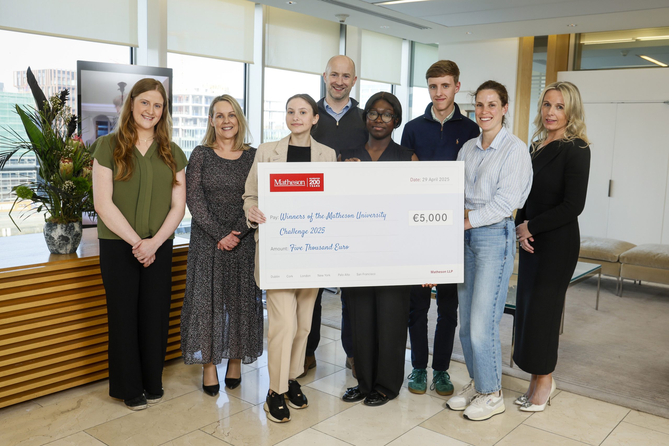 The Matheson University Challenge builds on the reach and significance of Matheson’s student, graduate and academic programmes, such as the UCC and Matheson Innovation Partnership and the Innovation and Legal Technology Graduate Programme. Through these programmes and scholarships, Matheson is focused on promoting a culture of innovation that allows students to develop new skills and reach their full potential.